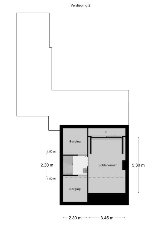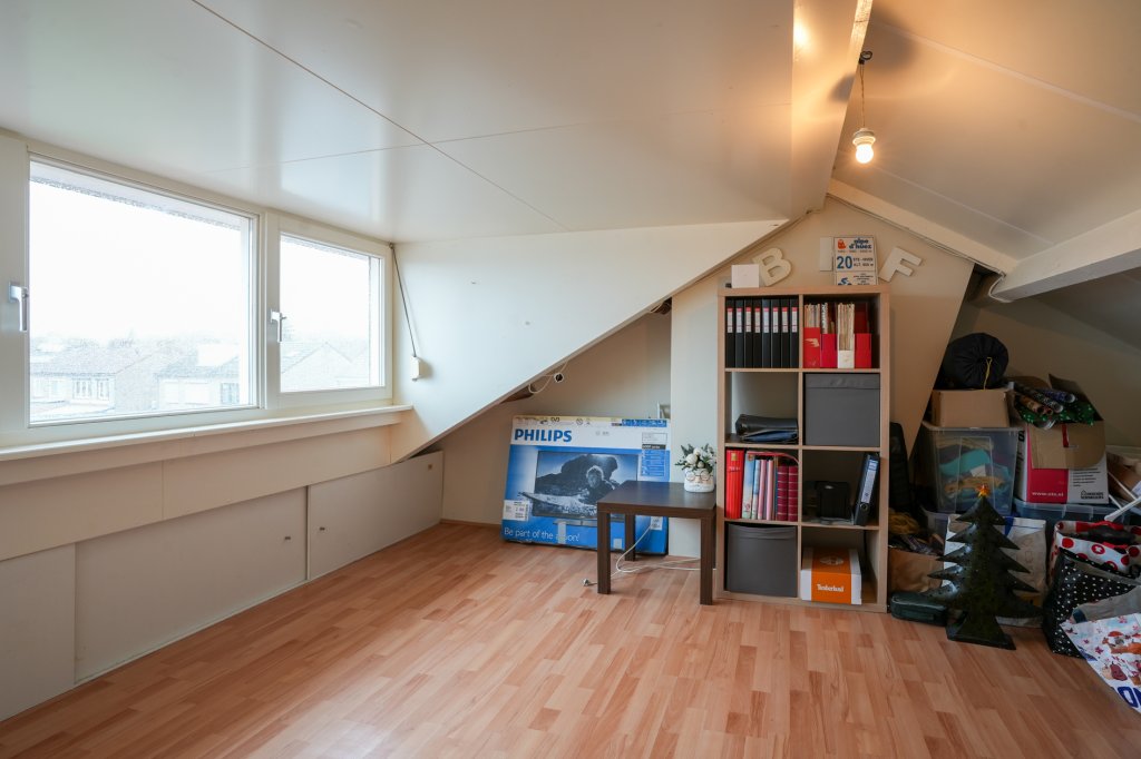 Via een vaste trap bereik je de ruime zolderverdieping, die zich uitstekend leent voor een extra slaapkamer, thuiswerkplek of hobbyruimte.