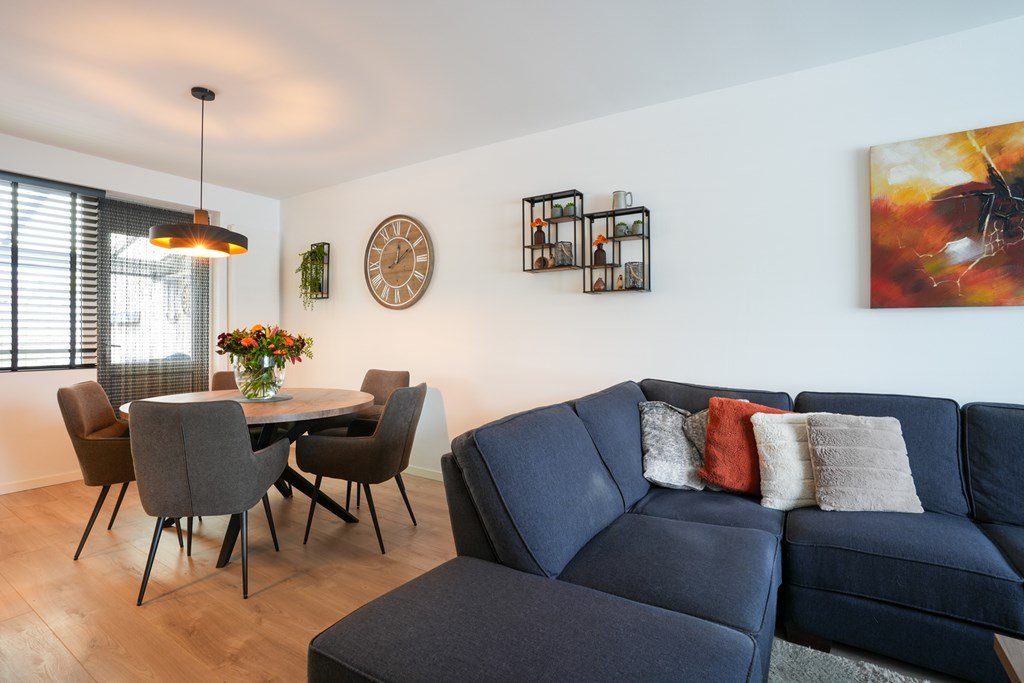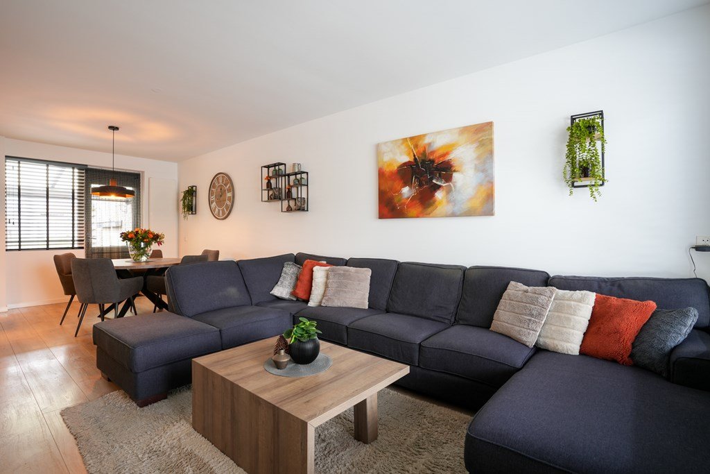 De woonkamer is heerlijk licht en vormt het warme hart van het huis. Een fijne ruimte om samen te komen, te ontspannen na een lange dag of gezellig te tafelen met vrienden.