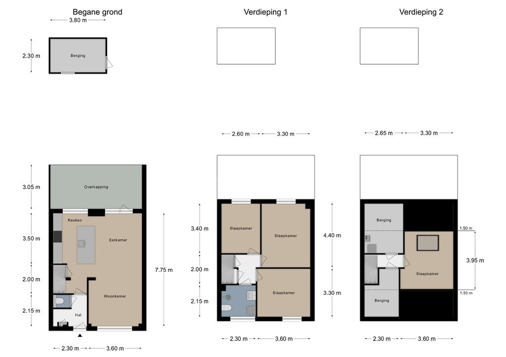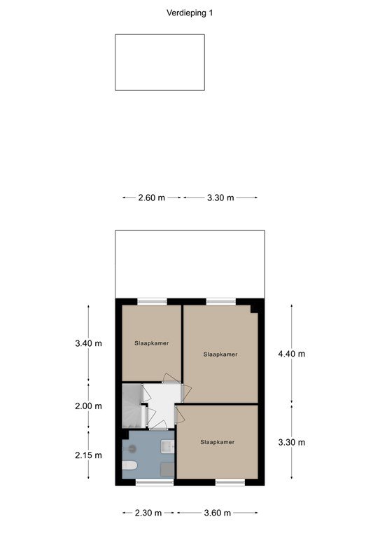 Op de eerste verdieping bevinden zich de slaapkamers en een keurige badkamer.
