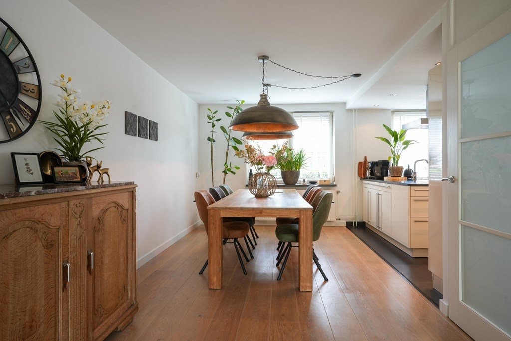 De houten vloer beneden is niet alleen prachtig om te zien, maar ook ideaal om indruk te maken op visite.