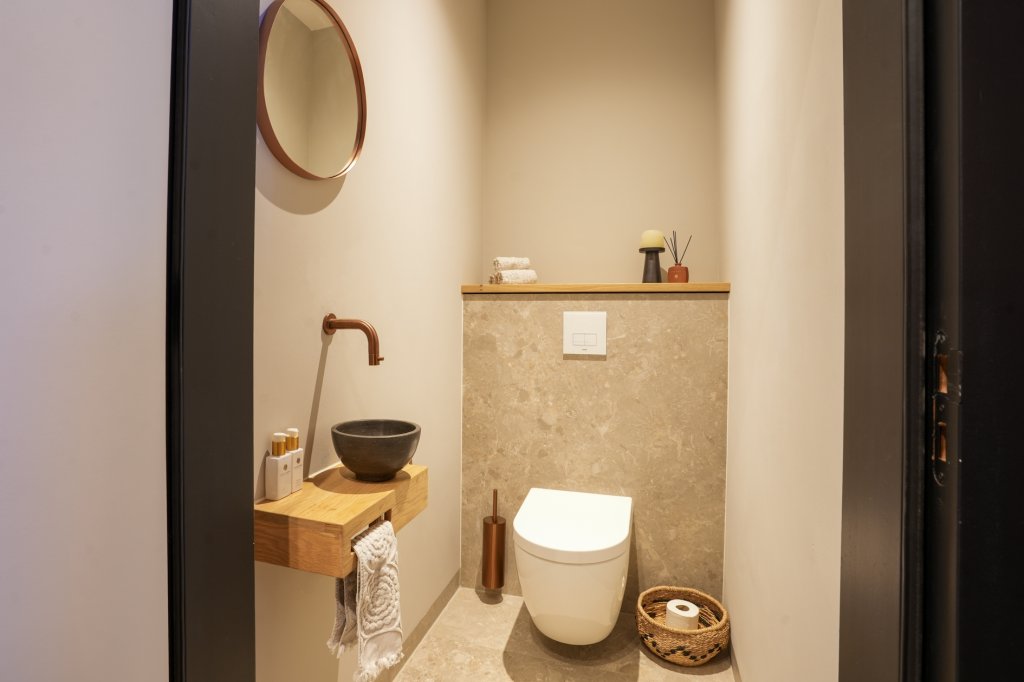 De leefruimte loopt door naar een sfeervol dakterras. Een onverwachte buitenplek, beschut en stil, midden in het dorp. Hier zit je los van de wereld, terwijl alles dichtbij is.