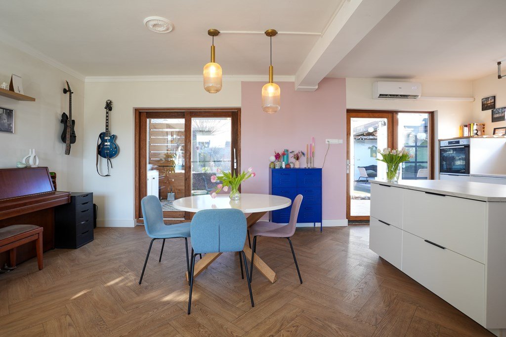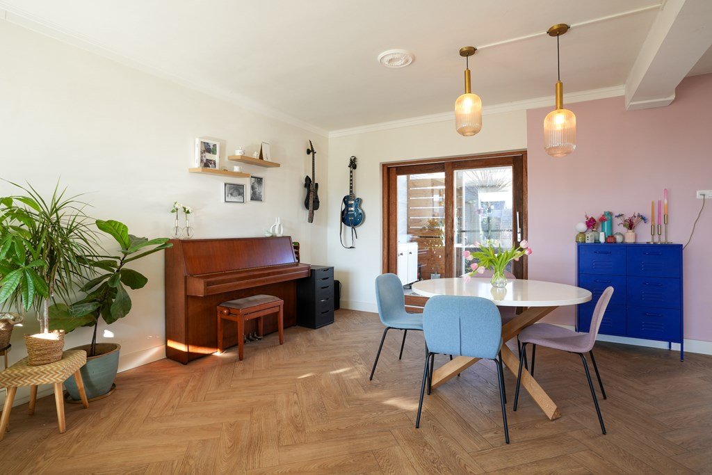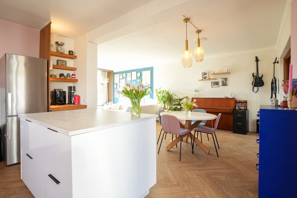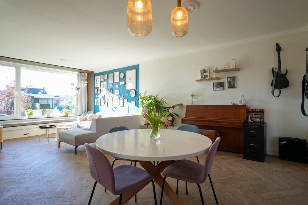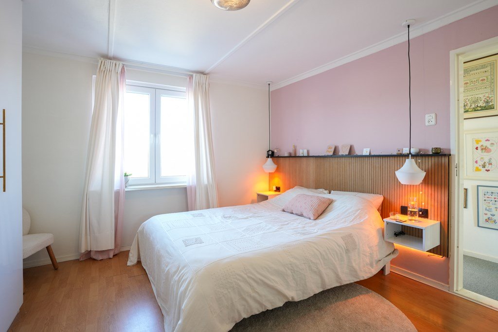 Binnen in de woning word je verwelkomd door een ruime hal, die direct toegang biedt tot de lichte woonkamer en de smaakvolle, ruime keuken. De ideale ruimte om gezellig te koken en te ontspannen met het gezin of vrienden. De separate toiletruimte maakt het geheel af. De houten trap leidt je naar de eerste verdieping, waar drie slaapkamers en een ruime badkamer op je te wachten staan. En de vierde slaapkamer? Die is met zorg gecreëerd op de tweede verdieping.