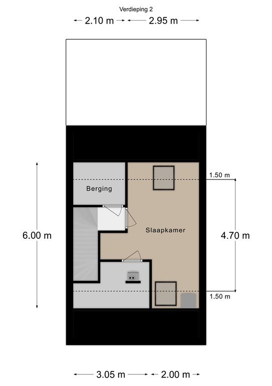 • Zolder totaal ca.23.7 m2 waarvan ca. 13.5 m2 slaapkamer